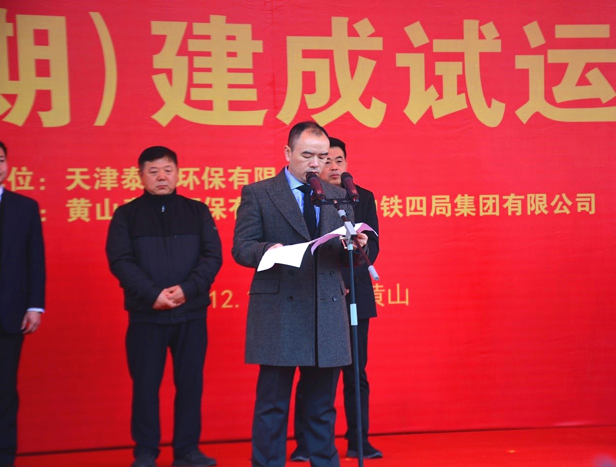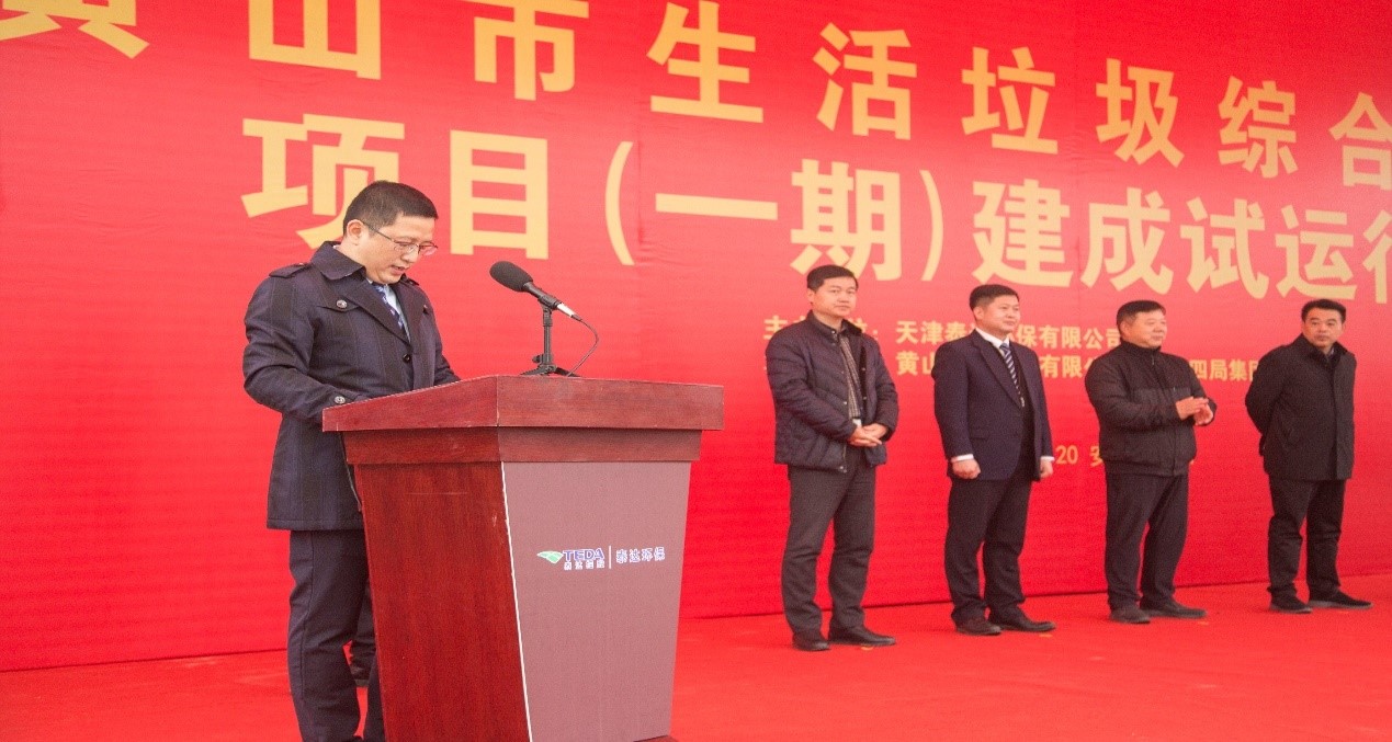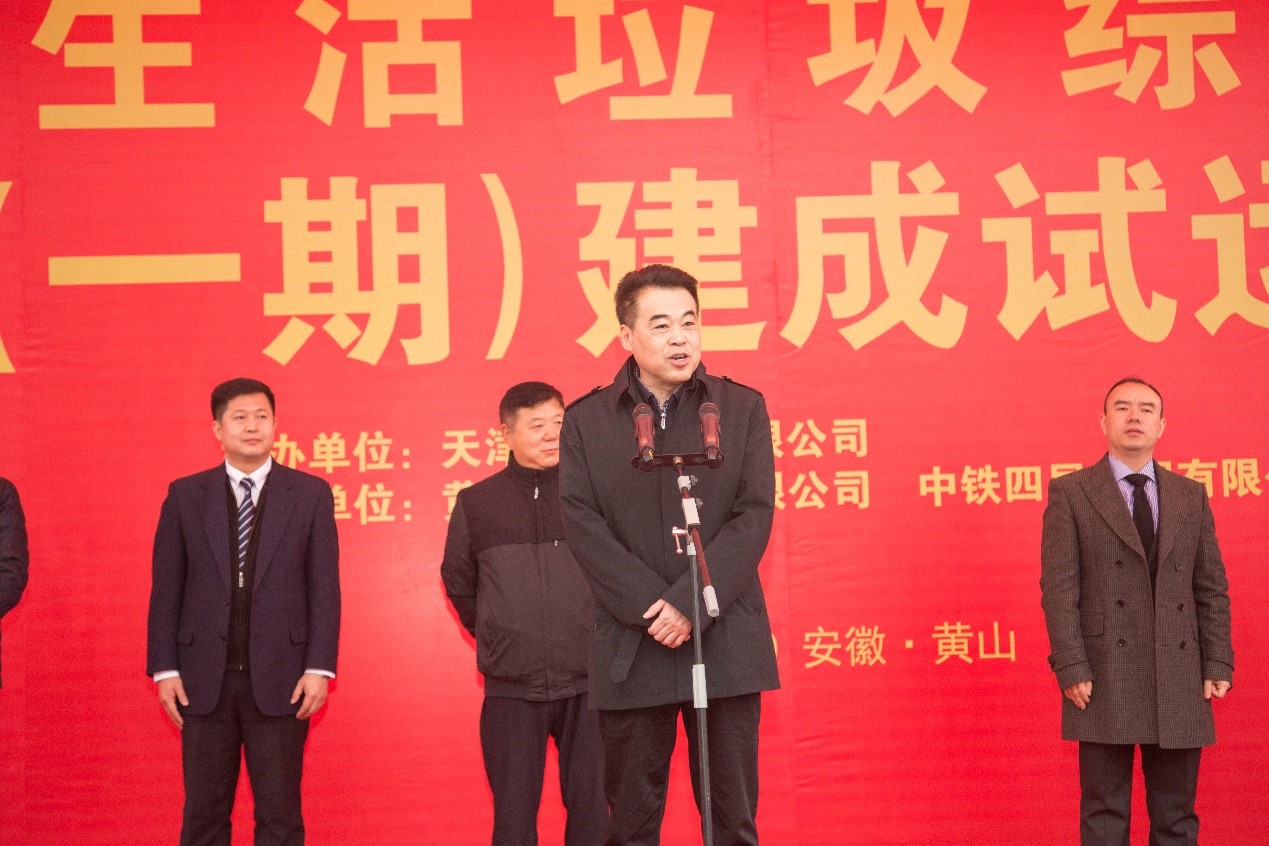 黃山市市委副書記、市長孔曉宏,黃山市副市長楊龍,天津泰達(dá)股份有限公司黨委書記、董事長胡軍,中鐵四局集團(tuán)有限公司黨委書記、董事長張河川,天津泰達(dá)股份有限公司紀(jì)委書記付強(qiáng)、總經(jīng)濟(jì)師彭瀚、財(cái)務(wù)總監(jiān)趙春燕,天津泰達(dá)環(huán)保黨總支書記滕丹、天津泰達(dá)環(huán)保有限公司副總經(jīng)理陳艷國及黃山市三區(qū)四縣等相關(guān)領(lǐng)導(dǎo)、黃山泰達(dá)環(huán)保有限公司、中鐵四局有限公司、安徽電建二公司等參建單位和周邊鄉(xiāng)鎮(zhèn)嘉賓等200余人共同見證了本次啟動儀式。